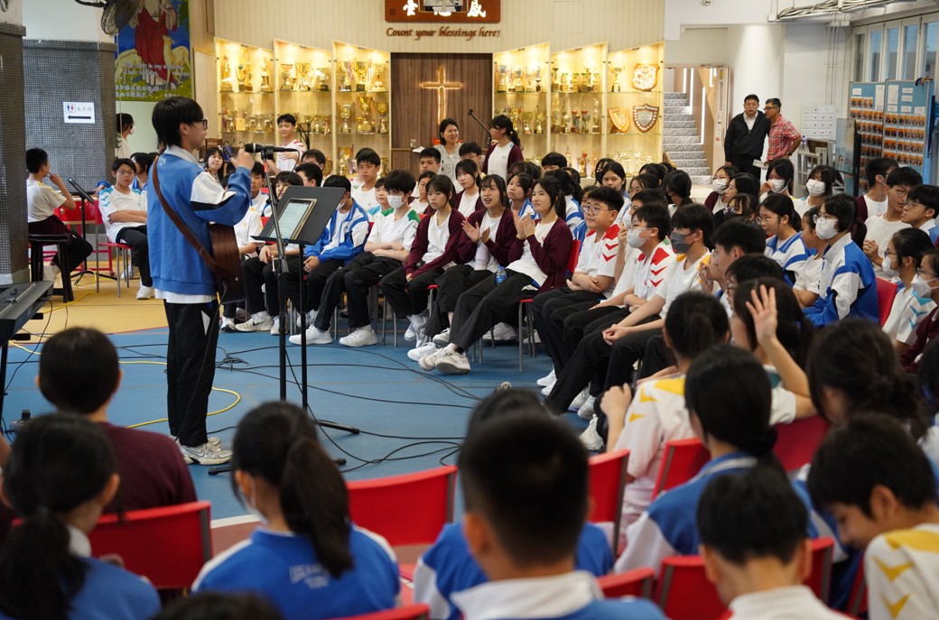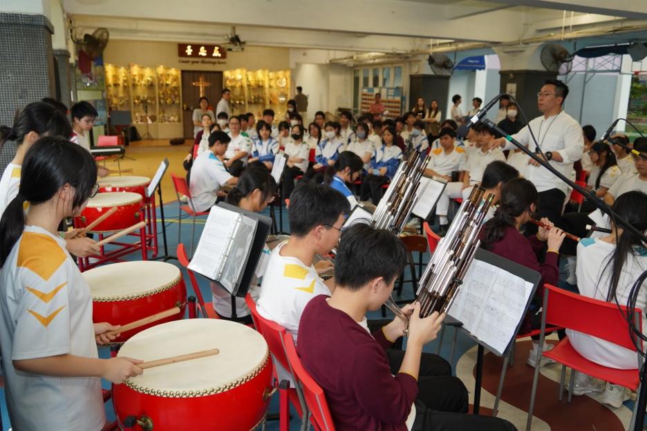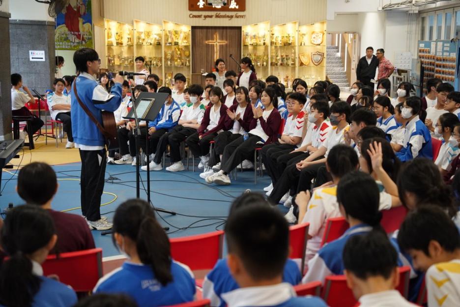 本校於 2026年4月17日舉行「表演藝術同樂日」,由聯課活動及其他學習經歷組、視覺藝術科、音樂科、STEAM組 負責,邀請全校師生參與。 當天學生除了在學校欣賞專業舞台演出,亦可與演藝人員近距離互動,於輕鬆歡樂的氛圍中探索潛能,讓同學更深入感受藝術的樂趣與魅力。現場同樣設有多元精彩環節,包括才藝表演、音樂劇、師生歌唱欣賞、街頭藝人表演,以及各類型藝術攤位體驗(如「VR繪畫體驗」、「Just Dance舞蹈爭霸戰」、「壯錦扇製作」、「創意插畫」、「塗鴉牆」、「大型釘子繞線畫」、「手工螺鈿飾物DIY」等),為同學提供發揮才華、建立自信的舞台!